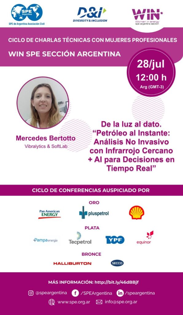 Charla técnica gratuita sobre análisis no invasivo en petróleo con IA, por Mercedes Bertotto de SoftLab.